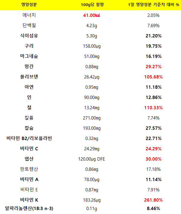 🥬 냉이 100g당 주요 영양성분
