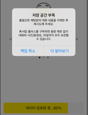 카카오!! 너네 이런식으로 영업하면 안됨...처음부터 임시 백업(무료) 가능한 용량이 얼마 안된다고 알려주던가! 그랬다면 대화 삭제를 하는 수고로움 없이 바로 톡서비스를 이용하잖아~~ 3000원 그게 얼마나 된다고 ㅜㅜㅜ 근데...데이터 정리 다 하고 나서 이런식으로 나오니 도저히 3000원을 지불 할 수가 없어~ 카카오 너네 주식도 있는데(물론 마이너스 ㅋㅋ), 본전오면 팔아버릴거야 ㅎㅎㅎ