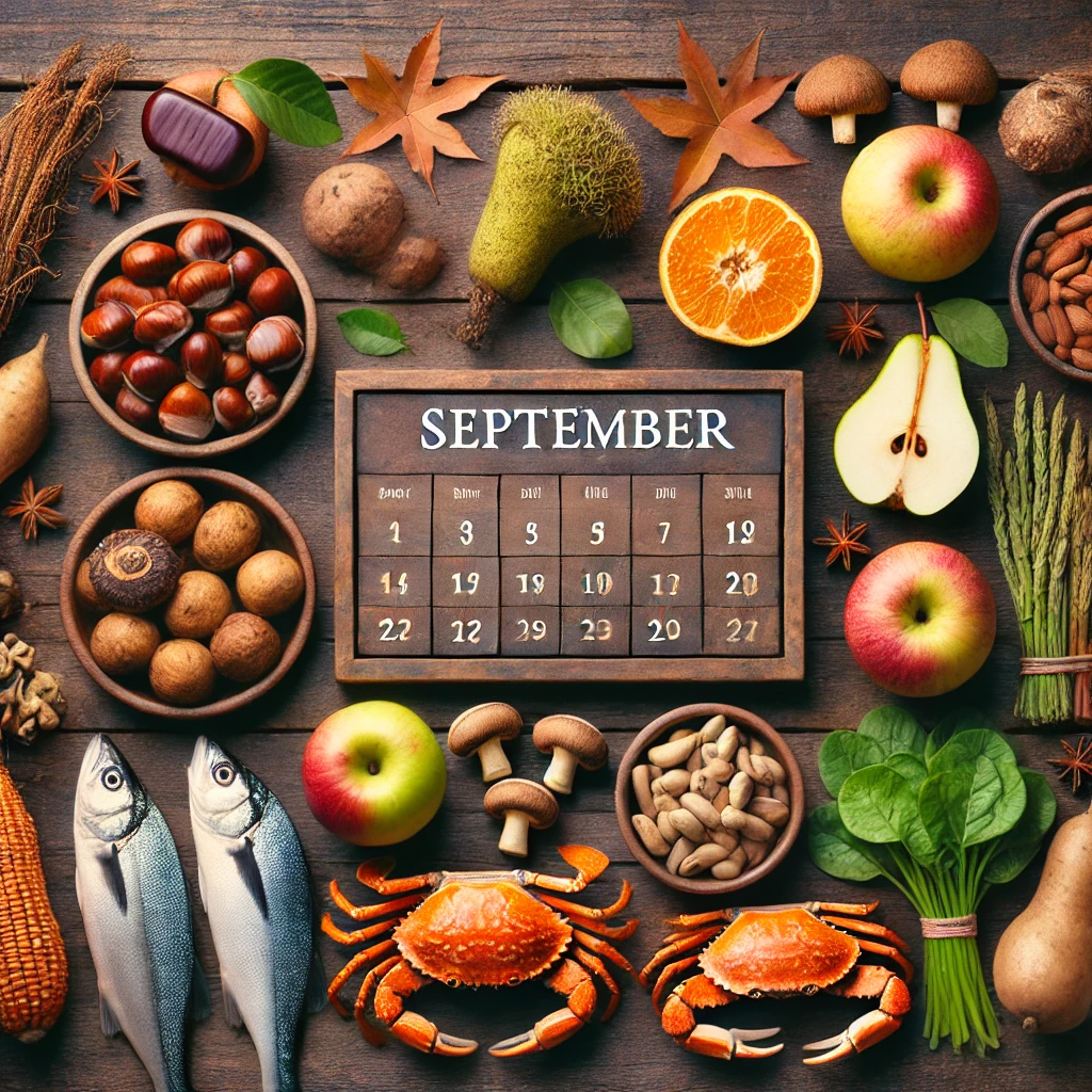 배: 9월에 수확되는 배는 과즙이 풍부하고 시원해 다양한 요리 및 디저트에 활용됩니다.